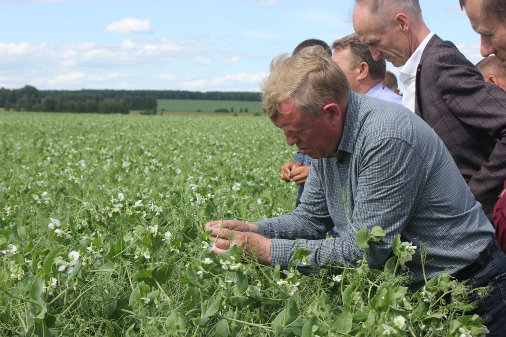 Далее переместились на поля соседей – ООО «Север». Здесь участники смотра смогли оценить посевы кукурузы, подсолнечника, пшеницы, гороха, сравнить два сорта льна – Канадский и Северный.