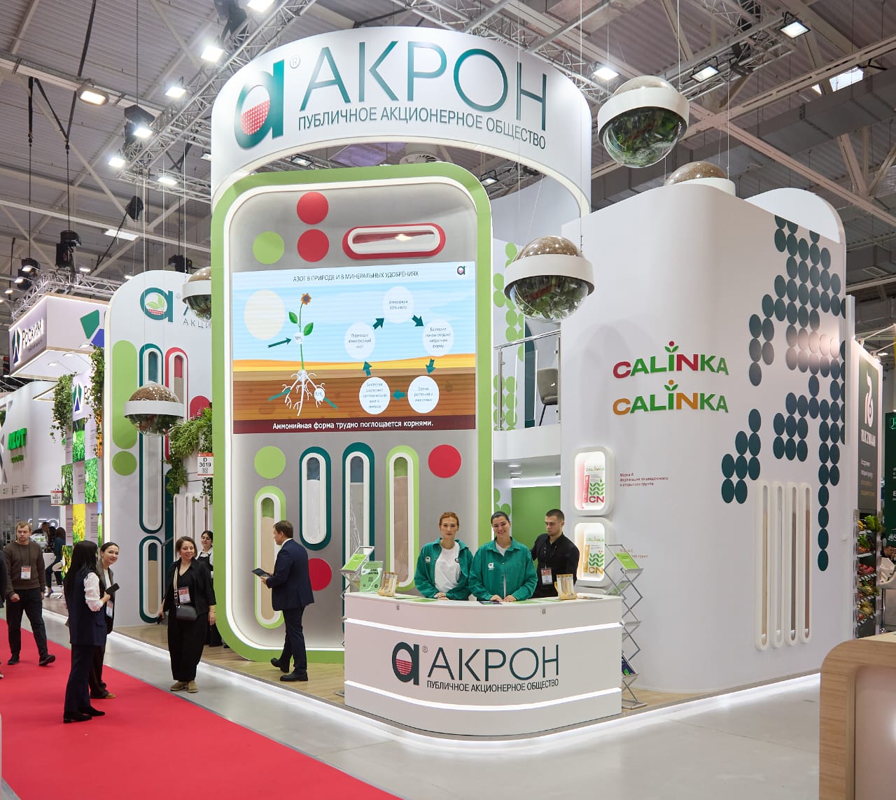 На стенде «Акрона» на выставке специалисты компании представляют полный спектр выпускаемых компанией минеральных удобрений. Среди популярных – универсальные марки, применяемые на всех типах почв во всех климатических зонах России, марки NPK удобрений с дополнительными элементами питания, а также премиальное азотно-кальциевое удобрение нитрат кальция под торговой маркой CALINKA.