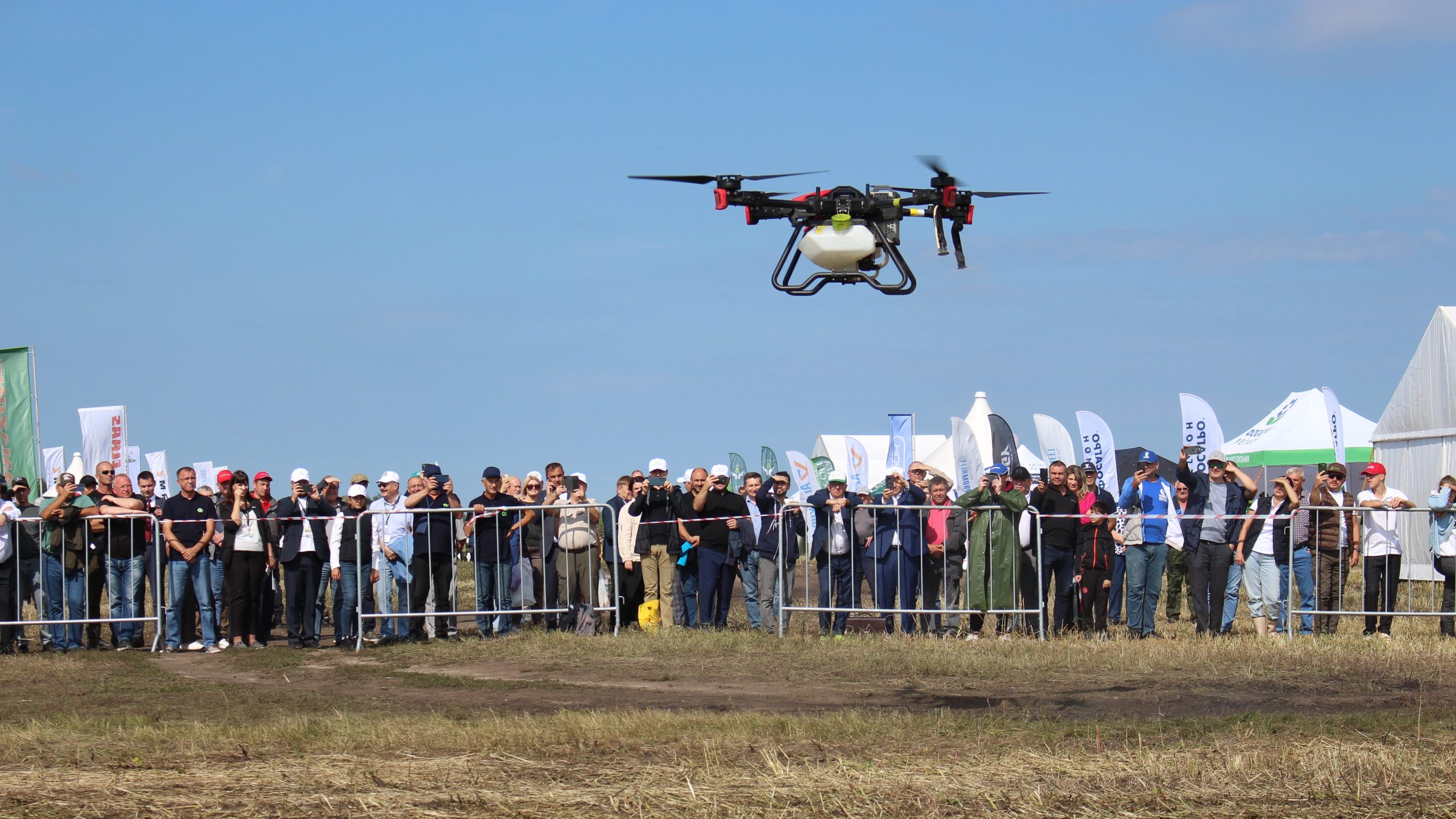 В параде приняли участие 20 агромашин. Последним пролетел агродрон XAG для обработки сельхозугодий, компании УралАгроДрон. Использование дронов в сельском хозяйстве – тренд последних нескольких лет. Еще не все специалисты отрасли доверяют работу БАС, но агродроны не заменимы в ситуациях, когда традиционная колесная техника не может зайти в поле, например, из-за переувлажнения почвы, а работы откладывать нельзя – упустишь момент и рискуешь остаться без урожая. Также дроны в отличие от классической техники не вытаптывают культуру, что позволяет сохранить 3-5% урожая. Благодаря технологии ультра-малого объема, достигается экономии воды до 90% и химпрепаратов до 20%.