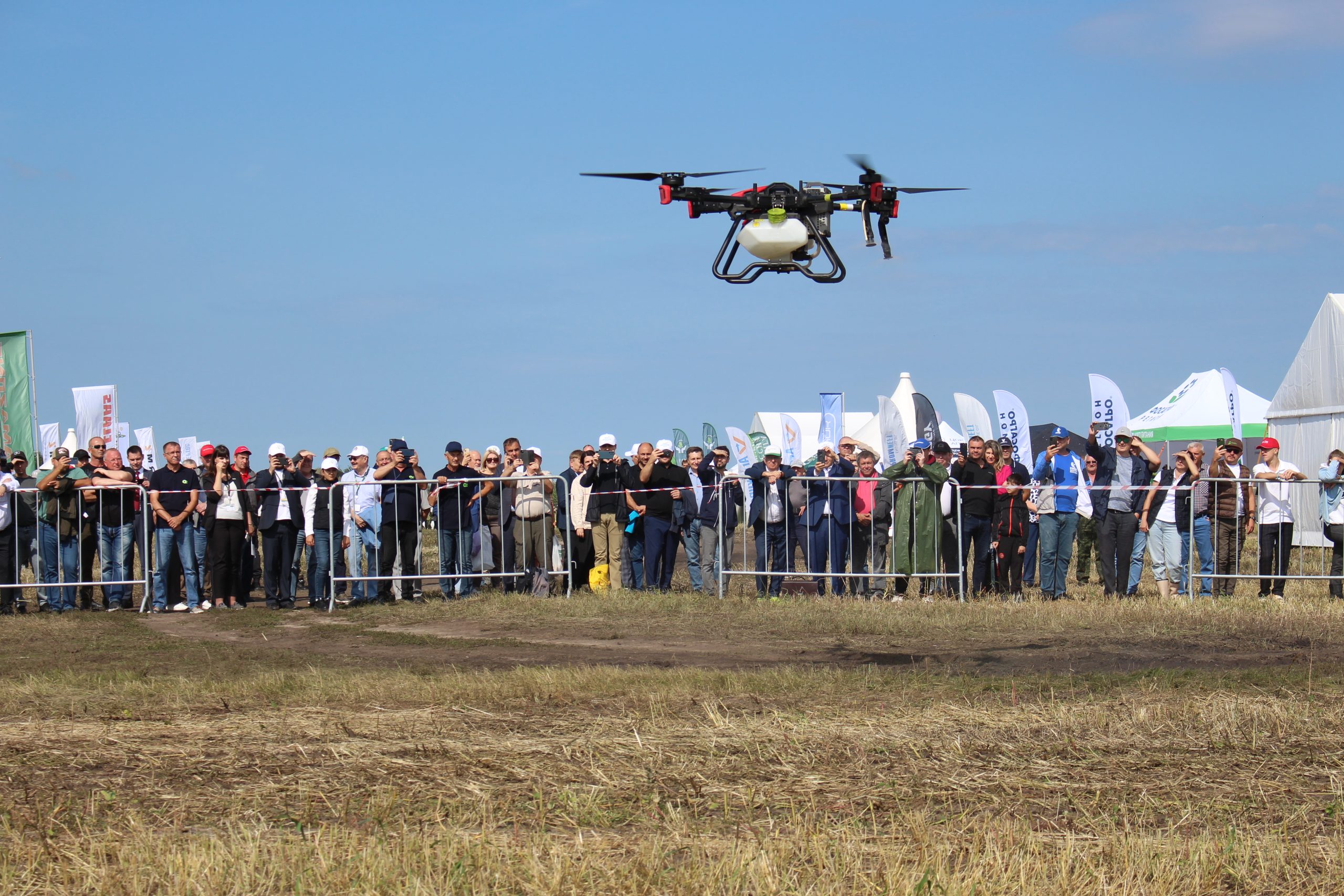 В параде приняли участие 20 агромашин. Последним пролетел агродрон XAG для обработки сельхозугодий, компании УралАгроДрон. Использование дронов в сельском хозяйстве – тренд последних нескольких лет. Еще не все специалисты отрасли доверяют работу БАС, но агродроны не заменимы в ситуациях, когда традиционная колесная техника не может зайти в поле, например, из-за переувлажнения почвы, а работы откладывать нельзя – упустишь момент и рискуешь остаться без урожая. Также дроны в отличие от классической техники не вытаптывают культуру, что позволяет сохранить 3-5% урожая. Благодаря технологии ультра-малого объема, достигается экономии воды до 90% и химпрепаратов до 20%.