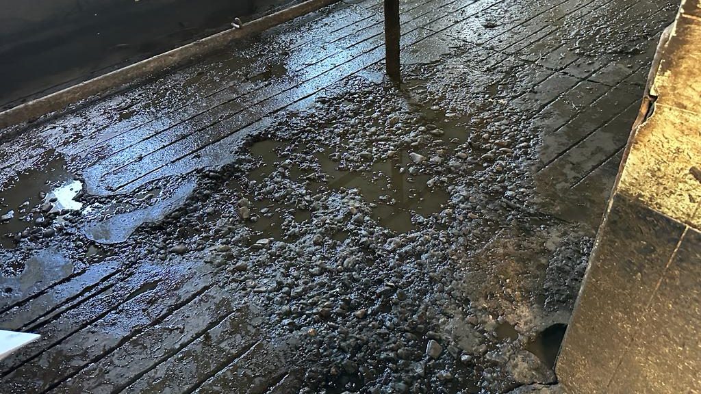 А в галереях и переходах, где зимой ниже нуля, это превращается в лёд, поднимает ковер пузырем и разрушает материал.