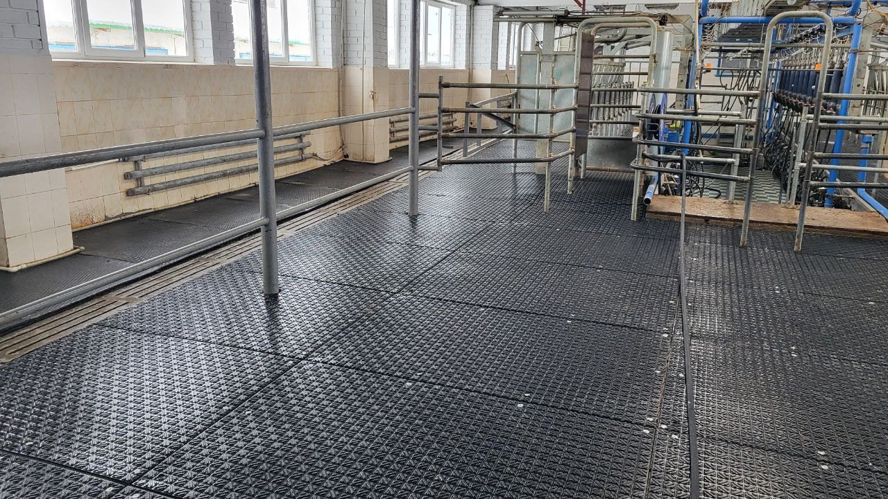 Резиновый мат DairyZone служит 10+ лет, не теряет форму и не деформируется под нагрузкой.
