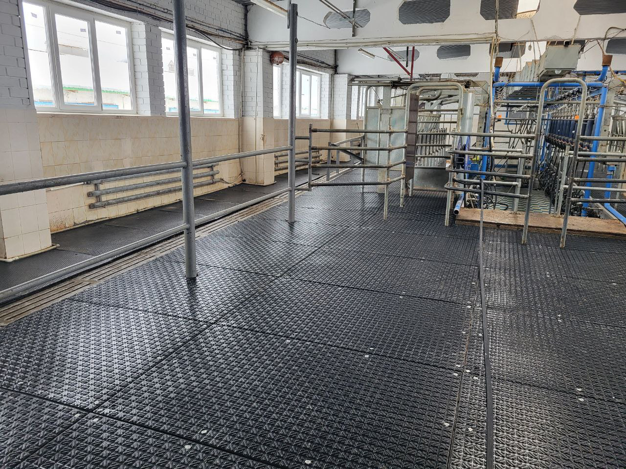 Резиновый мат DairyZone служит 10+ лет, не теряет форму и не деформируется под нагрузкой.